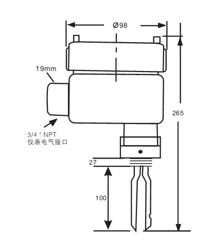 音叉由晶體激勵(lì)產(chǎn)生振動,當(dāng)音叉被液體浸沒時(shí)振動頻率發(fā)生變化,這個(gè)頻率變化由電子線路檢測出來并輸出一個(gè)開關(guān)量。