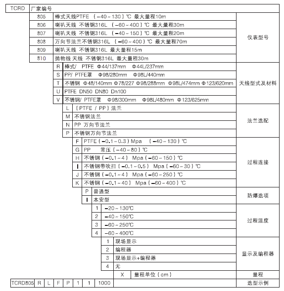 TCRD805雷達(dá)液位計(jì)技術(shù)參數(shù)