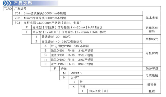 導(dǎo)波雷達(dá)物位計TCRD702訂貨需知: